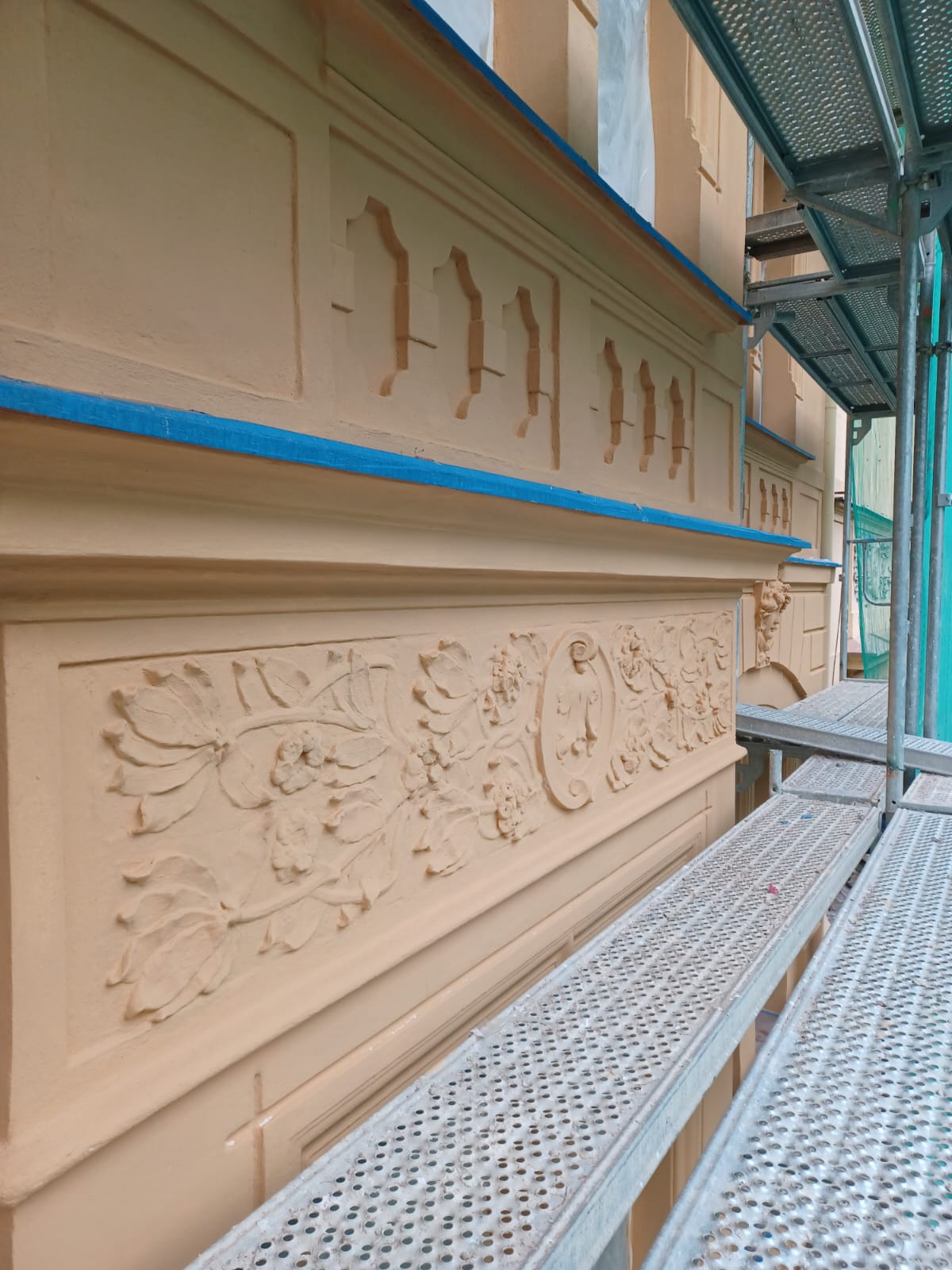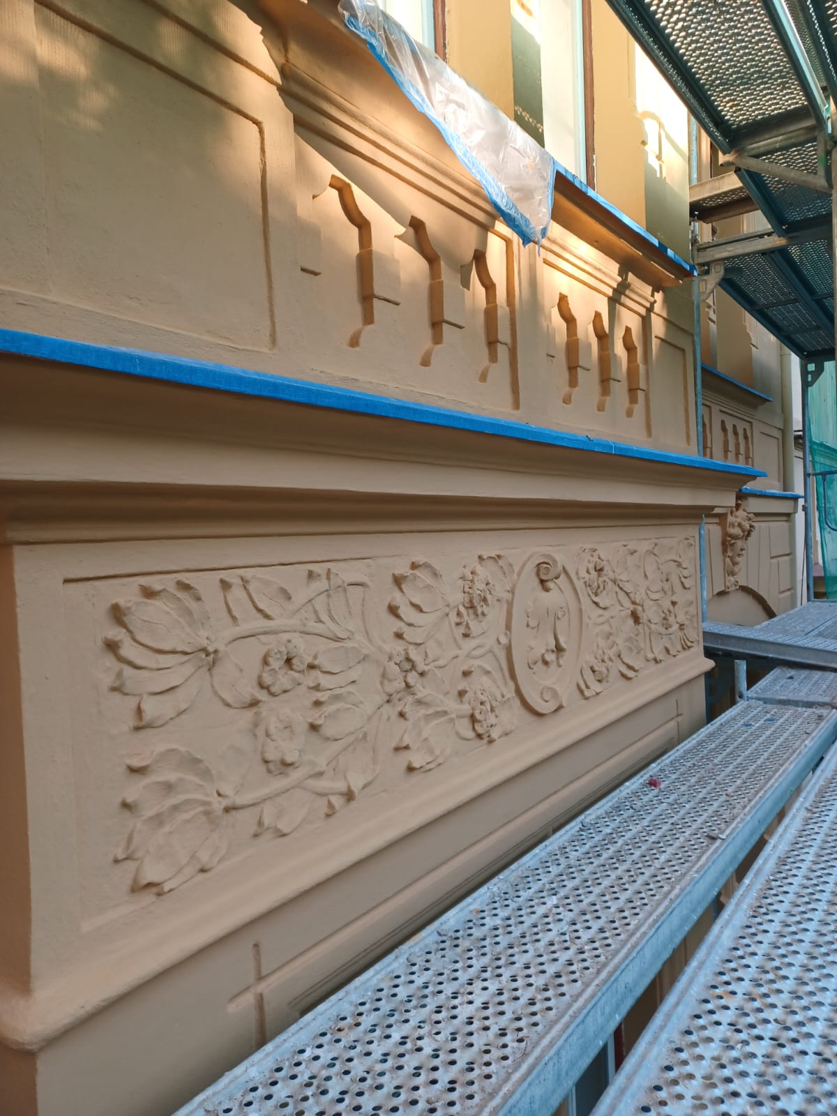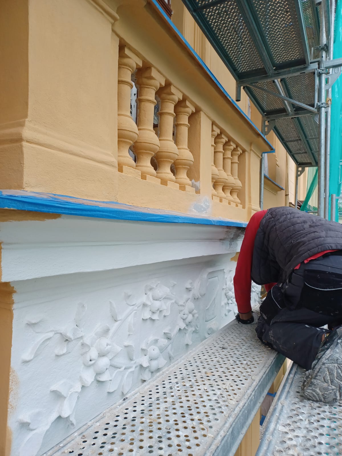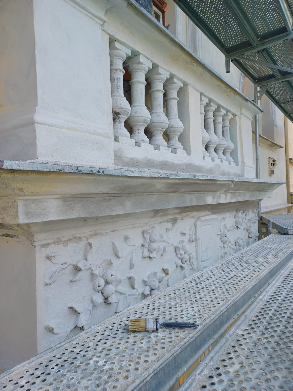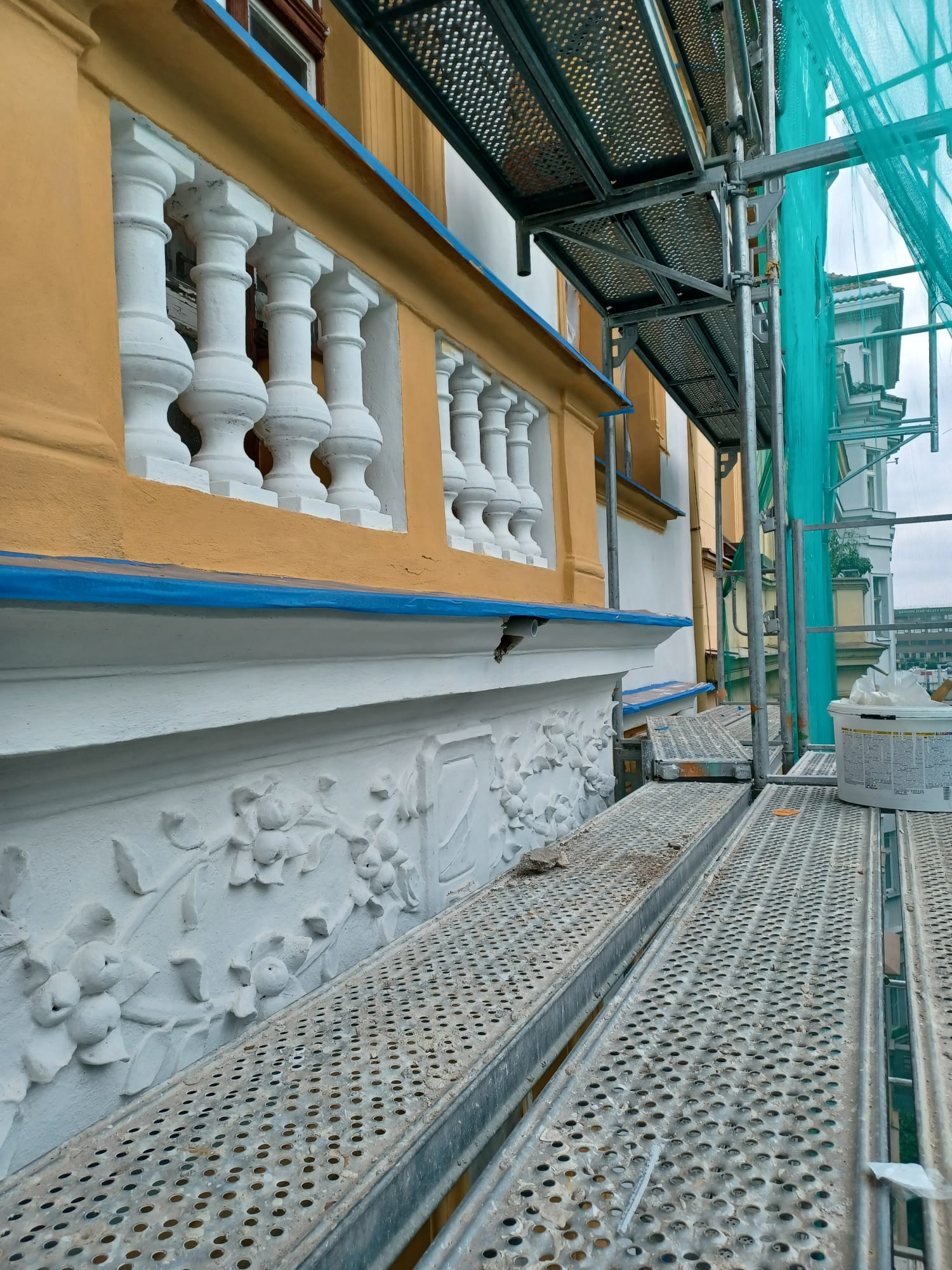 Rekonstrukce fasády s ornamenty za odborného vedení restaurátora p. Stopy